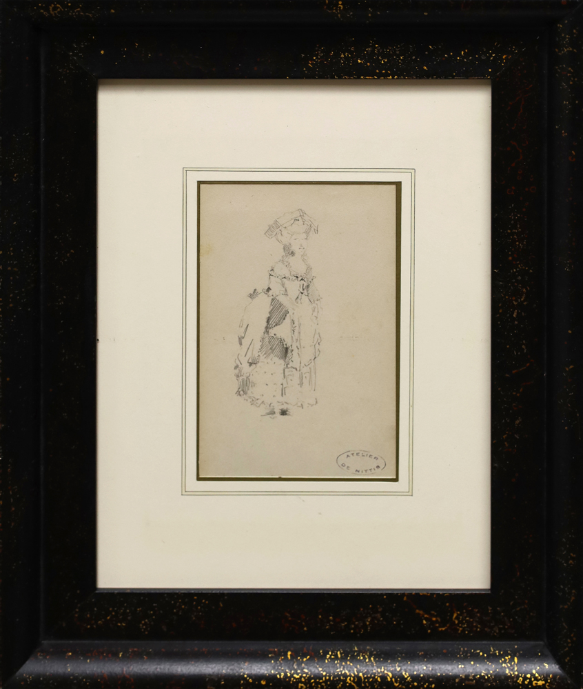 In basso a destra timbro Atelier De Nittis; a retro “Studio di volto” a dichiarazione di autenticità di Enrico Piceni Splendida opera di Giuseppe De Nittis, uno dei più importanti artisti dell’Ottocento europeo. Nel lavoro in esame si evince una finezza esecutiva e tecnica di altissimo livello, lavoro eseguito sicuramente durante il periodo francese dell’artista, intorno al 1870/1875