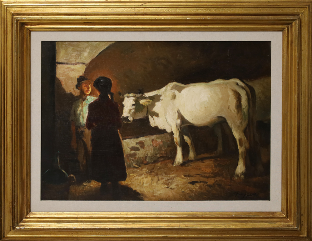 Firma in basso a destra Filippelli si formò all’Accadermia di Firenze e fu tra i principali pittori labronici attivi nel corso del Novecento. Si specializzò nella rappresentazione di scene di vita familiare in interni, come nel caso del nostro splendido dipinto. Fu presente, sempre con grande successo, nelle più importanti rassegne italiane del suo tempo.