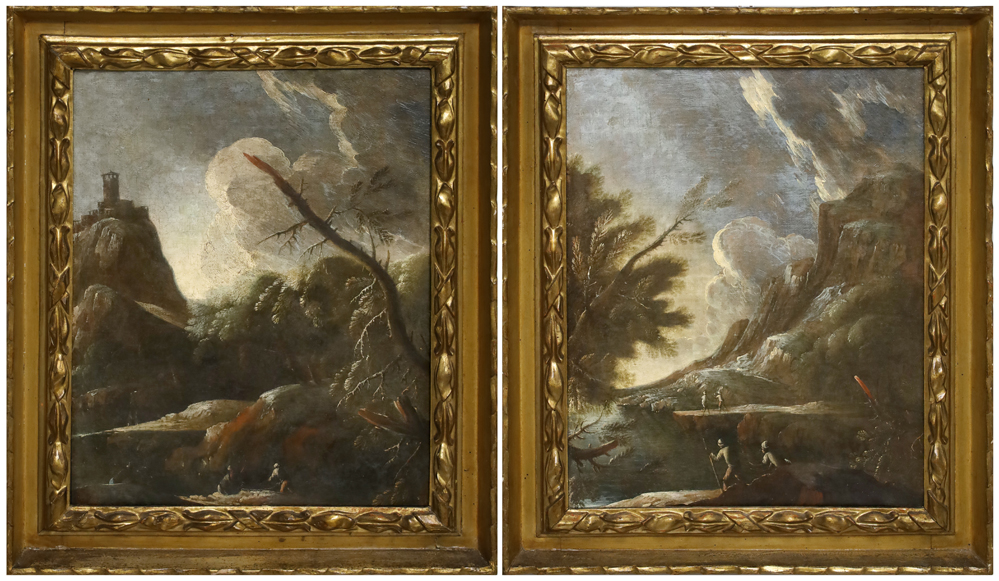 Famoso pittore di paesaggi invernali, Francesco Foschi, Ancona 1710 – Firenze 1780, si formò nella bottega di Francesco Mancini a Fano. Nel 1729 l’artista si trasferì a Roma dove sviluppò un vivo interesse per le vedute di Panini e Vanvitelli e dei paesaggisti sei-settecenteschi. Le prime opere a noi note raffiguranti paesaggi invernali si conservano al Museo di Grenoble che, si confermano le capostipiti di una produzione che divenne la sua specialità. Questa tipologia di opere riscosse uno straordinario successo collezionistico e, sia pur di ascendenza fiamminga e olandese, Foschi riuscì a imprimergli un carattere personalissimo, grazie all’enfasi tonale del colore bianco e un uso dei grigi