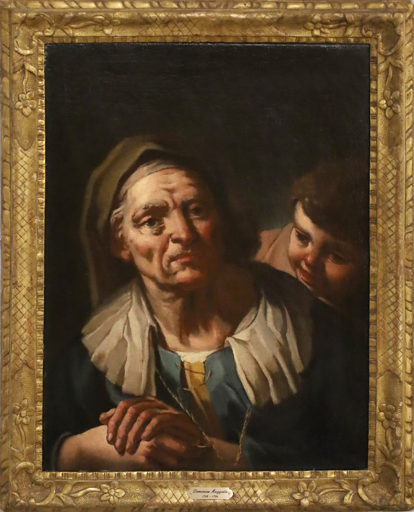 Domenico Fedeli, Venezia 1713 – Venezia 1794, frequentò lo studio di Giovanni Battista Piazzetta nel 1622 e, a differenza di altri suoi coetanei, non si mosse mai da Venezia, articolando la formazione pittorica sull’opera del maestro e sulla pittura fiamminga del Seicento, da Vermeer a Rembrandt a Baburen, conosciuta tramite la diffusione delle stampe e dei dipinti. L’artista rimase fedele al chiaroscuro piazzettesco dalle tonalità bruno-rossastre, rielaborandone con abilità il repertorio iconografico e tecnico, eseguendo tele di tema storico e religioso, ritratti aulici e allegorie profane, prediligendo però i soggetti bucolici e popolari.