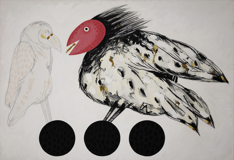 Opera firmata ed intitolata al verso, “Pozzati, Sentinelle dal becco avvelenato”. Opera registrata presso l’Archivio Concetto Pozzati al n° 1729/***.